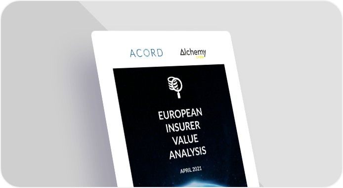 ACORD and Alchemy Crew recently conducted an extensive analysis of the leading European-headquartered insurers, representing €1.2T+ in annual revenue. The goal of the analysis was to explore the primary drivers of high performance in the European insurance market. • What did superior performers do differently than their competitors? • What were their strategies and tactics, and how did they approach innovation and change? • What can be learned in terms of leadership and culture? The study identified superior performers by applying a proprietary operating cash flow return model, and examined these high-performing insurers across a variety of quantitative and qualitative dimensions in order to answer these questions.
