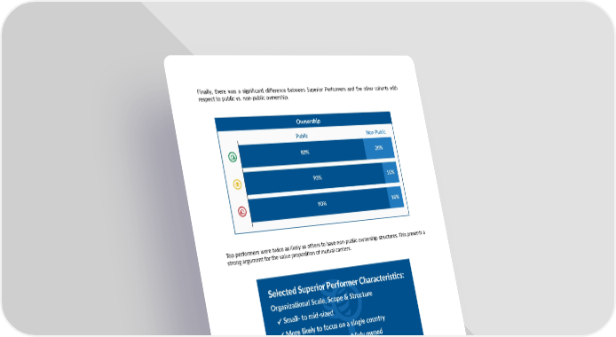 Finally, there was a significant difference between Superior Performers and the other cohorts with respect to public vs. non-public ownership. Ownership Public Non-Public 80% 20% 90% 10% 90% 10% Top performers were twice as likely as others to have non-public ownership structures. This presents a strong argument for the value proposition of mutual carriers. Selected Superior Performer Characteristics: Organizational Scale, Scope & Structure Small- to mid-sized More likely to focus on a single country More likely to be non-publicly owned EUROPEAN INSURER VALUE ANALYSIS 7