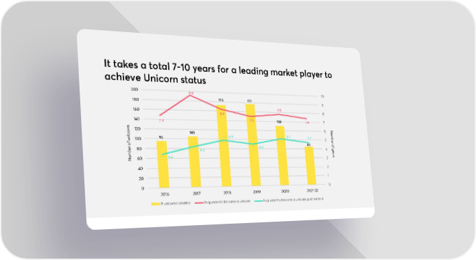 It takes a total 7-10 years for a leading market player to achieve Unicorn status 200 9.6 10 180 173 177 9 160 7.8 8 8.2 140 7.4 7.5 130 7.4 7 s Nu n 120 6 r o 105 m c i 4.9 5.1 4.7 b n 100 95 5 e u r f o o 85 f r 4.5 y e 80 4.2 4 e b a m r Nu 60 3.4 3 s 40 2 20 1 0 0 2016 2017 2018 2019 2020 2021 Q1 # unicorns created Avg years to become a unicorn Avg years to become a unicorn post series A © Alchemy Crew Ltd 2021. All rights reserved 6