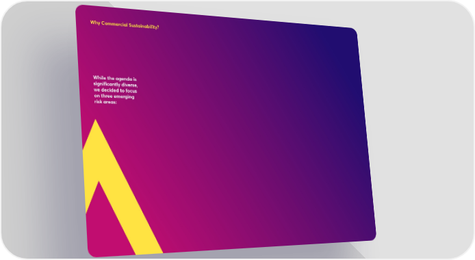 Why Commercial Sustainability? While the agenda is significantly diverse, we decided to focus on three emerging risk areas: